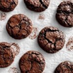 Store these brownie cookies in an airtight container at room temperature for up to 3 days. To keep them fresh longer, refrigerate for up to one week. Reheat gently in the microwave for about 10 seconds if you prefer them warm and gooey.