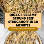Keywords: ground beef stroganoff, easy beef stroganoff, quick dinner, creamy stroganoff, egg noodles, comfort food, weeknight meal