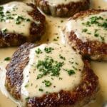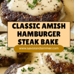 This Amish Hamburger Steak Bake is a comforting, hearty casserole featuring juicy ground beef patties smothered in a rich, creamy onion gravy. Perfect for a family dinner, this classic recipe combines simple ingredients like ground beef, onions, and a luscious cream-based gravy baked to perfection in one skillet.