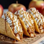 Keywords: Apple Pie, Dessert Tacos, Cinnamon, Fall Dessert, Crispy Taco Shells, Whipped Cream, Caramel Sauce