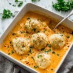 Store leftover soup with dumplings in an airtight container in the refrigerator for up to 3 days. Reheat gently on the stove over low heat, stirring occasionally to prevent sticking. The dumplings may soften further but remain delicious. For longer storage, freeze the soup without dumplings for up to 2 months and add fresh dumplings when reheating.