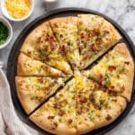 - Finish and Serve: Sprinkle sliced green onions on top and serve your delicious breakfast pizza warm.