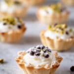 - Fill the Cups: Spoon or pipe the ricotta filling into the cooled pie crust cups. For a more decorative presentation, place the filling in a large resealable plastic bag or a pastry bag fitted with a star tip, cut a small corner, and squeeze to fill the cups evenly. Garnish by sprinkling additional mini chocolate chips on top and a light dusting of powdered sugar.