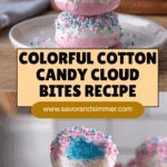 - Add Toppings (Optional): Once cooled, top the Cotton Candy Cloud Bites with whipped frosting and sprinkle with cotton candy pieces just before serving for added sweetness and decoration.