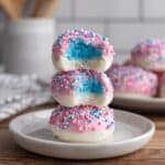 - Add Color: Divide the batter evenly into two separate bowls. Add a few drops of pink food coloring to one bowl and a few drops of blue food coloring to the other. Stir each until the colors are evenly distributed.