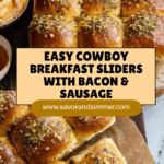 These Cowboy Breakfast Sliders are a hearty and flavorful morning treat, packed with eggs, sausage, bacon, and melted cheddar cheese all nestled inside soft King’s Hawaiian rolls. Perfect for feeding a crowd or a weekend brunch, they combine savory ingredients with a touch of cowboy butter for an irresistible start to your day.