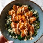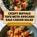 This Crispy Buffalo Tofu with Caesar Salad recipe features crispy air-fried tofu coated in a spicy buffalo butter sauce, served atop a fresh kale Caesar salad. It’s a delicious and easy plant-based twist on classic buffalo wings, perfect as a dinner option for vegetarians wanting bold flavor and satisfying texture.