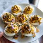 - Drizzle chipotle mayo: Lightly drizzle each deviled egg with chipotle mayo for a smoky, spicy kick that complements the dish’s flavor profile.