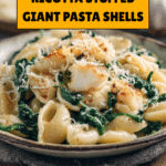 Delicious giant pasta shells stuffed with a creamy spinach and ricotta mixture, topped with mozzarella and parmesan, then baked in a rich marinara sauce. This comforting Italian-inspired dish is perfect for a hearty family meal or special occasion.