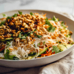 This refreshing Glass Noodle Salad combines tender bean thread noodles with shredded chicken, crisp vegetables, and a zesty lime and cashew dressing. Perfect for a light lunch or a vibrant side, it’s full of fresh herbs and delightful textures.