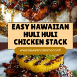Keywords: Huli Huli chicken, Hawaiian chicken recipe, grilled chicken, pineapple glaze, tropical chicken stack, teriyaki chicken, grilled pineapple, easy chicken dinner