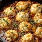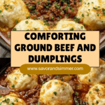 Hearty Ground Beef and Dumplings is a comforting dish perfect for chilly evenings. Tender dumplings steam on top of a savory, thickened ground beef filling, creating a satisfying one-pan meal that pleases the whole family.