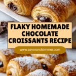 Keywords: homemade chocolate croissants, laminated dough, French pastries, chocolate-filled croissants, breakfast recipes, flaky croissants