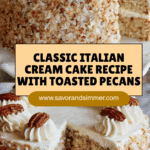 Italian Cream Cake is a rich, moist dessert filled with toasted pecans and coconut, layered with creamy frosting. This classic Southern treat combines delicate flavors and textures that are sure to impress at any gathering.