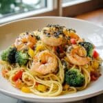 This Jamaican Shrimp Pasta combines tender shrimp sautéed with vibrant bell peppers and aromatic garlic, all tossed in a creamy coconut milk sauce spiced with bold Jamaican jerk seasoning. Served over perfectly cooked fettuccine or linguine and garnished with fresh cilantro and lime wedges, this dish delivers a delightful blend of Caribbean flavors with comforting pasta for an easy weeknight meal.