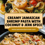 Keywords: Jamaican shrimp pasta, jerk shrimp pasta, Caribbean pasta recipe, creamy shrimp pasta, coconut milk pasta, seafood pasta, easy dinner, spicy shrimp pasta