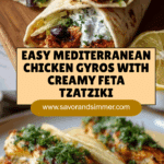 Keywords: Mediterranean chicken gyros, creamy feta tzatziki, Greek chicken wrap, easy chicken gyro recipe, healthy gyros