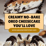 Keywords: No-Bake Oreo Cheesecake, Oreo dessert, no bake cheesecake, Oreo crust, Oreo ganache, easy cheesecake recipe