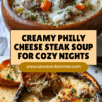This Philly Cheese Steak Soup is a hearty and comforting dish inspired by the classic sandwich. Featuring tender slices of beef sirloin, sautéed onions, and bell peppers in a rich beef broth, blended with creamy provolone cheese, this soup delivers all the flavors of a Philly cheesesteak in a warm, creamy bowl. Perfect for cozy dinners, it’s both satisfying and easy to make.