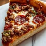 Pizza Burger Pie is a delicious fusion of classic burger flavors and pizza in a comforting pie form. Juicy ground beef seasoned with Italian spices is combined with savory pizza sauce, mozzarella cheese, and pepperoni, all encased in a golden, flaky pizza dough crust. Perfect for family dinners or a fun twist on pizza night.