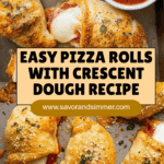 These Pizza Rolls with Crescent Rolls are a delicious and easy-to-make snack featuring gooey mozzarella cheese, pepperoni, and pizza sauce wrapped in flaky crescent dough. Perfectly baked to golden brown, they make a great appetizer or party treat served with extra pizza sauce for dipping.
