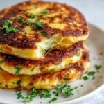 These potato and onion cheese pancakes are crispy, golden delights filled with melted mozzarella and a fresh tomato-herb topping. Perfect as a hearty main dish, they combine simple ingredients into a flavorful and satisfying meal that’s easy to prepare at home.