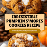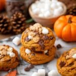 Keywords: Pumpkin S’mores Cookies, pumpkin spice cookies, s’mores dessert, fall cookies, chocolate chip pumpkin cookies, marshmallow cookies