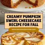 This cheesecake with pumpkin swirl combines creamy richness with warm, autumnal spices in a beautiful marbled dessert. Perfect for holiday gatherings or cozy nights, it balances classic cheesecake smoothness with a flavorful pumpkin twist.