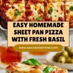 This sheet pan pizza is an easy and delicious way to enjoy homemade pizza with minimal effort. With a light, airy crust and fresh tomato sauce, it’s perfect for a casual dinner or a family gathering.