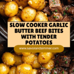 Keywords: slow cooker beef, garlic butter beef bites, beef stew, slow cooker dinner, beef and potatoes, hearty slow cooker meal, easy slow cooker recipe