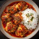 This Spicy Brazilian Coconut Chicken recipe features tender chicken breasts simmered in a rich, flavorful sauce made with coconut milk, tomatoes, and warm spices. A perfect blend of heat from red pepper flakes and aromatic cumin, enhanced with garlic, ginger, and fresh cilantro for a vibrant, tropical twist.