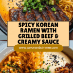 Keywords: Spicy Korean Ramen, Grilled Beef, Gochujang Ramen, Korean Noodles, Creamy Spicy Sauce, Instant Ramen Recipe