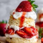 - Assemble Strawberry Shortcakes: While warm, split each shortcake in half. Layer strawberry topping and whipped cream between halves and on top for a luscious dessert.