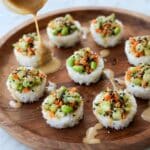 These Sushi Cups are a fun and fresh twist on traditional sushi, featuring seasoned sushi rice molded into cups and filled with a vibrant mix of chopped veggies, steamed edamame, and creamy avocado. Topped with a spicy mayo drizzle and black sesame seeds, they make a perfect appetizer or light meal that’s easy to prepare and serve.