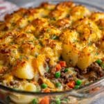 Store any leftovers in an airtight container in the refrigerator for up to 3 days. To reheat, cover the shepherd’s pie with foil and warm it in the oven at 350°F (175°C) until heated through, about 20 minutes. You can also microwave individual portions but the oven method helps retain the crispy potato topping.
