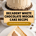 Keywords: white chocolate mocha cake, espresso cake, white chocolate ganache, Swiss meringue buttercream, mocha dessert, coffee cake