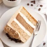 Keywords: white chocolate mocha cake, espresso cake, white chocolate ganache, Swiss meringue buttercream, mocha dessert, coffee cake